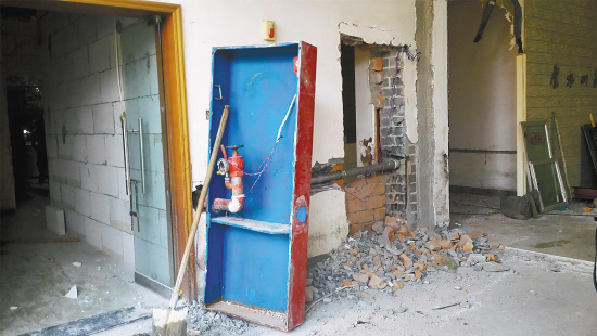 记者在保安室门口的店面看到,楼下进门处一堵墙上有个敲出的门洞,门洞里露出一截新安装的消防管道。高师傅介绍,这个门洞就是原先消防栓的位置,现在消防栓被移到了2米开外的玻璃门边。