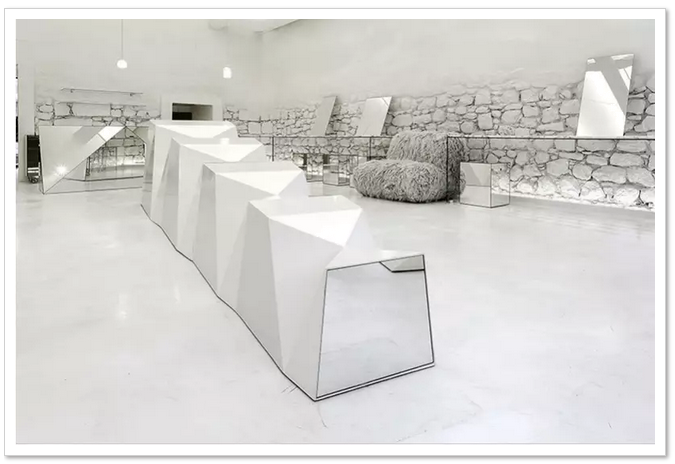 不规则几何体的家具和大量镜面