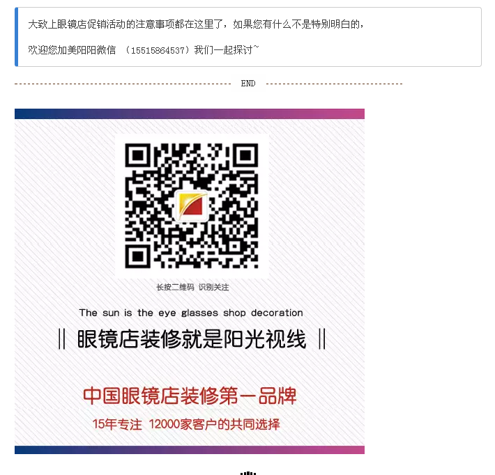 美阳阳建议眼镜零售企业建立以下的促销活动体系: