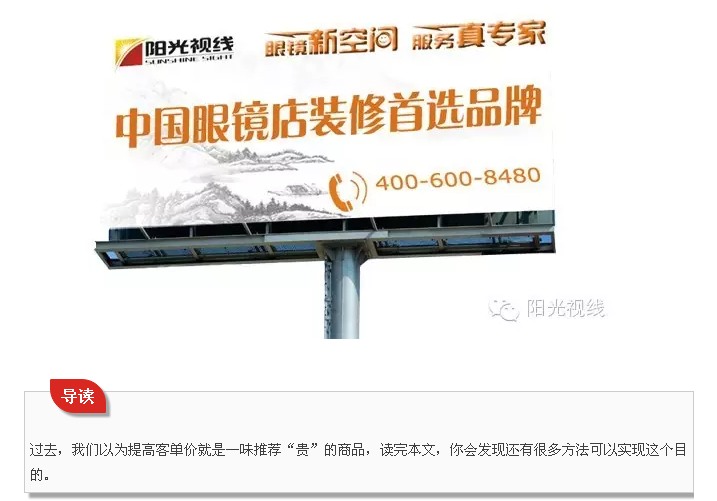 如果顾客消费的量是固定的,比如一个人一次只会配一副眼镜,那当我们能够让顾客买价值高的产品时,显然客单价就增加了。在这些方面,采用一些看似无形却有意的引导方式引导顾客进行消费升级,显然是一种很好的策略。