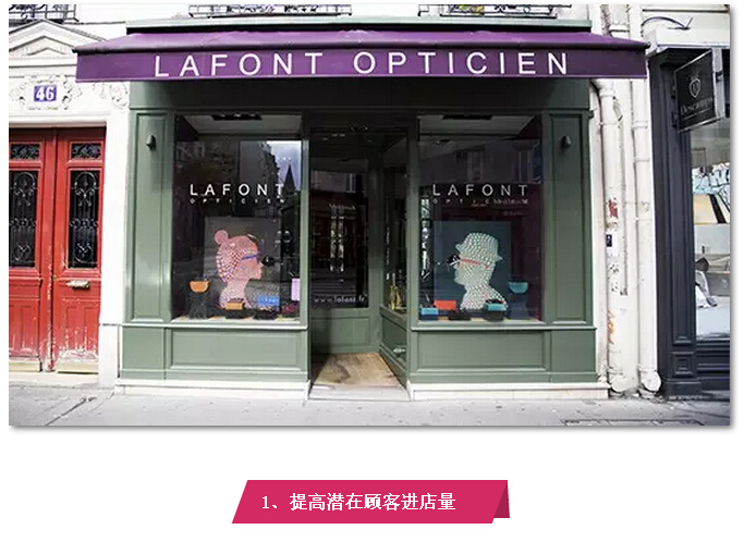 通过新颖震撼的橱窗布置,可以吸引从我们店面前面路过的潜在顾客,有很多顾客可能当时没有进来,但是他们至少通过橱窗布置看到了这边有一家眼镜店,等下次他们有需求的时候,就会过来的,而有一些正好目前就有配镜需要,正好橱窗的布置刺激到他的购买欲望,他就会进到店里消费。