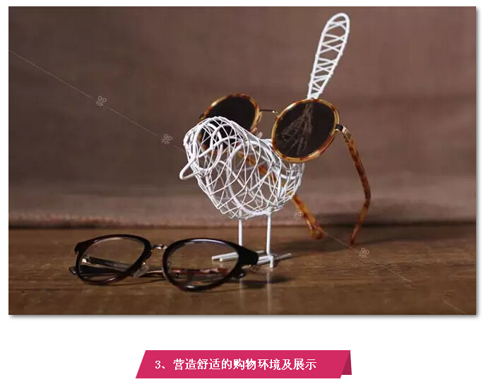 现在很多眼镜零售店在陈列时想创造顾客体验,这是很好的想法,但具体摆放时却显得很凌乱和层次感不强,等使很多顾客选择商品时眼花缭乱,无所适从。同时,由于产品的款式较多,材质差异很大,如果没有进行重点引导顾客的确难以拿定主意。因此,眼镜店在陈列时要注意区分产品的类别、款式、颜色,让整个门店显得整洁和谐,并且方便用户挑选。