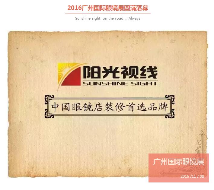 此时,2016广州国际眼镜展也已落下帷幕,三天时间虽短,但足以彰显阳光视线装饰的品牌魅力,高品质与高性价比成就客户,真正实现企业与客户的共赢!