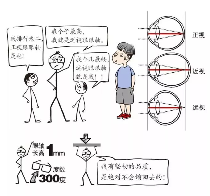 近视患者都是眼轴中的“高个子”。专家表示,高个子父母生的孩子个子也高,如果父母均为高度近视患者,子女遗传近视的几率为80%。