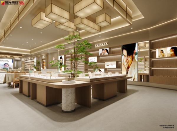 这些都属于中性色调,中性色调一直是商业空间的经典选择,会显得更强调柔和、温暖的自然色调。这种颜色不仅显得干净、专业,还能营造出放松的购物氛围,适合各种类型的眼镜店。