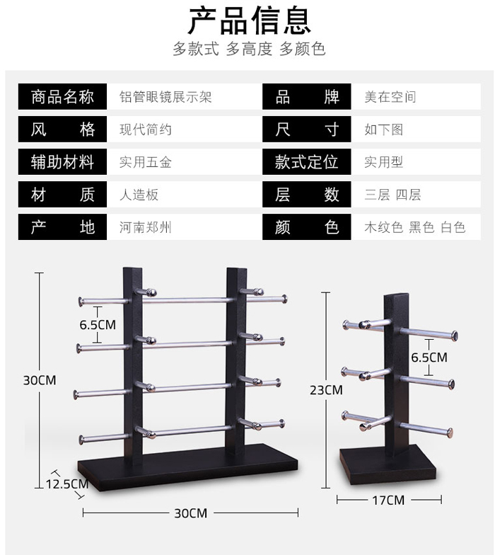 品牌: 美在空间型号: 铝管眼镜架材质: 木木质材质: 其他产地: 河南省颜色分类: 黑色单排3付 白色单排3付 木色单排3付 黑色双排8付 白色双排8付 木色双排8付附加功能: 拆装 移动 储藏