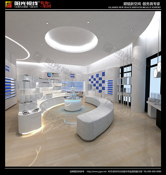 因此视光中心店的装修需要从人性化服务的角度出发,以专业性为主,整体装修应简洁明亮,干净舒适,为顾客营造一个温馨轻松的就诊氛围。
