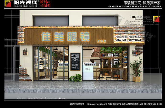 在这看脸的社会,一张美丽的脸总会让人更想去亲近、了解些,而对于一间眼镜店来说,店面就像人脸一样,能不能在第一时间给人留下好印象就靠店面装修了!然而在整个店面装修中,门头则是点睛之笔!