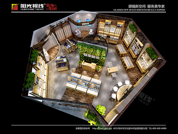 那么对于眼镜店来说,当然也少不了软装的充实,有了它们,整个空间都会更多丰富多彩,也显得更加有生气!阳光视线装饰集团在眼镜店装修设计方面,也在最大程度上发挥出了软装的效用。