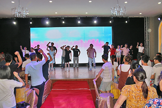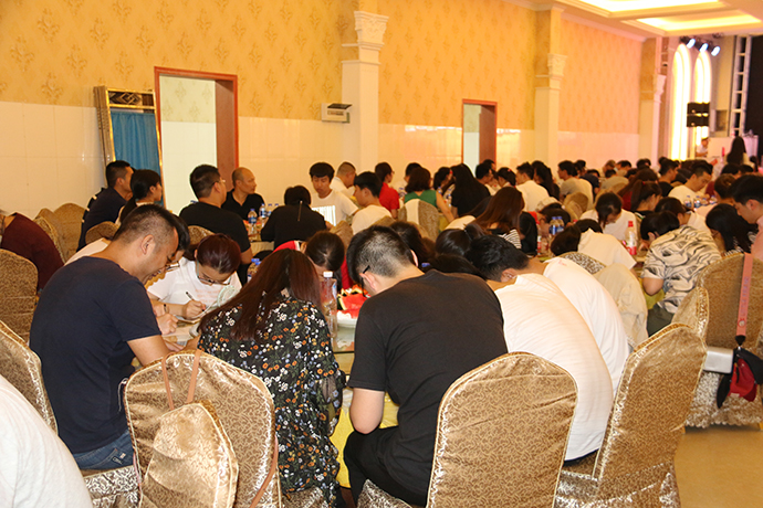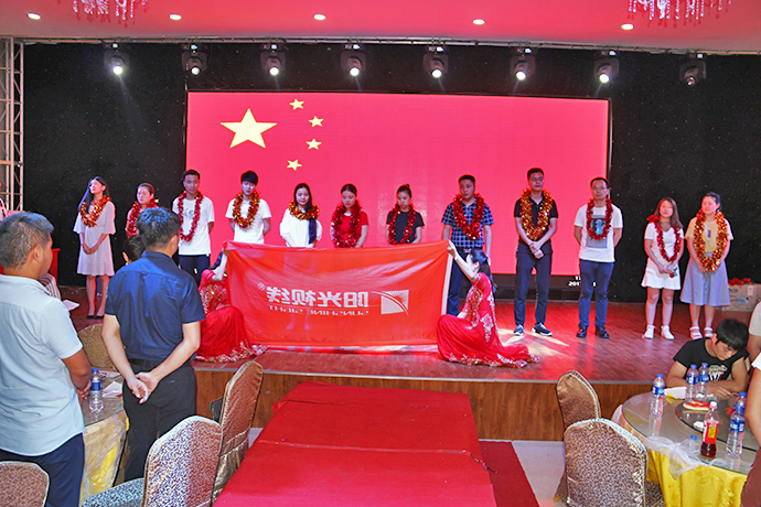 不知不觉天已黑,启动会的晚宴在歌声中开始了,王总及公司、工厂的各位高层领导向每位家人敬酒祝词,祝愿阳光视线的明天更美好!
