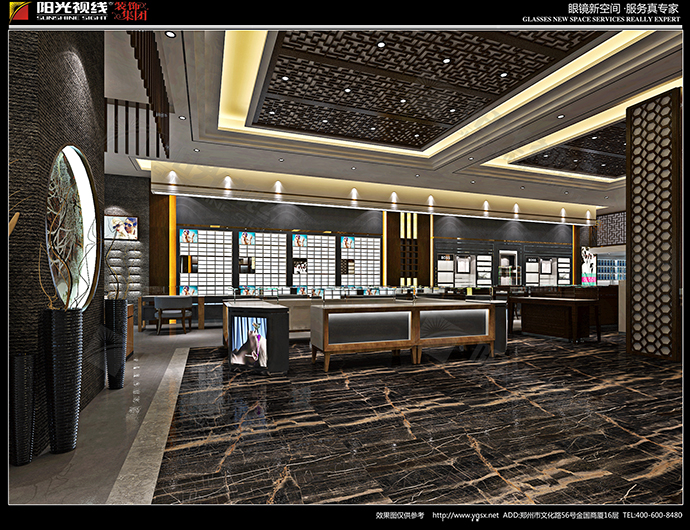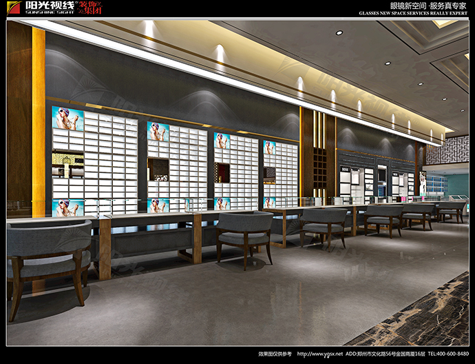 在展现眼镜店商业性质的同时,阳光视线装饰集团的设计师更考虑了宜美的空间环境,使身处其间的人既能体验到现代的舒适便捷,又能感受到传统的文化精神,从而为客户提供优质的服务。