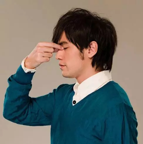 以左手或右手大拇指按鼻根部,先向下按、然后向上挤。