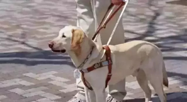 渐行渐近,只见年轻男子高大魁梧,腰板挺直。紧贴着他的德国导盲犬配有专业的拉杆——哦,是一位盲人。