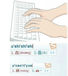 只要先输入“u”,然后输入各个部首的全拼,就能在拼音输入法中打出来哦。